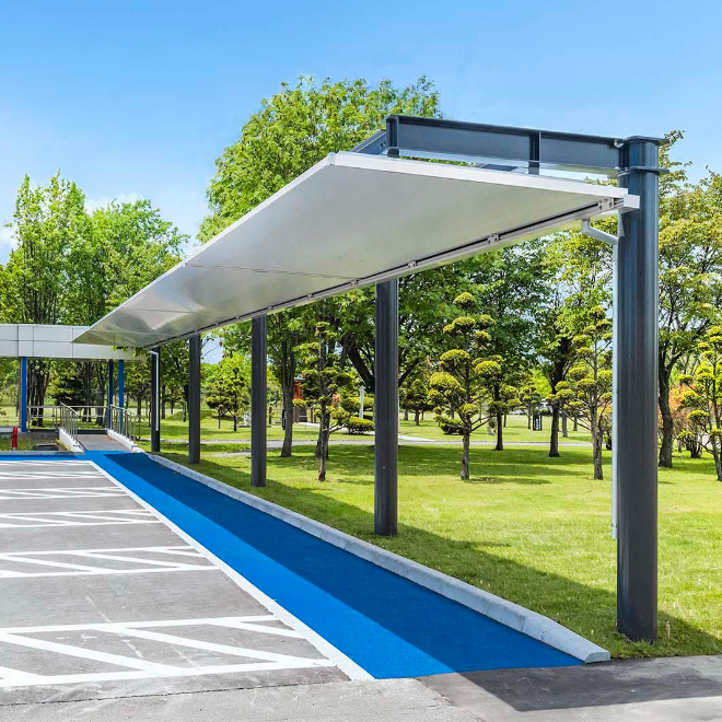 駅前広場やペデストリアンデッキのシェルター、建築の屋根・庇など身近な日常に寄り添う製品を取り揃えております。