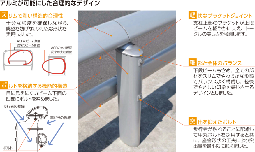 景観に配慮したアルミニウム合金製橋梁用ビーム型防護柵 アスレール/ASR®