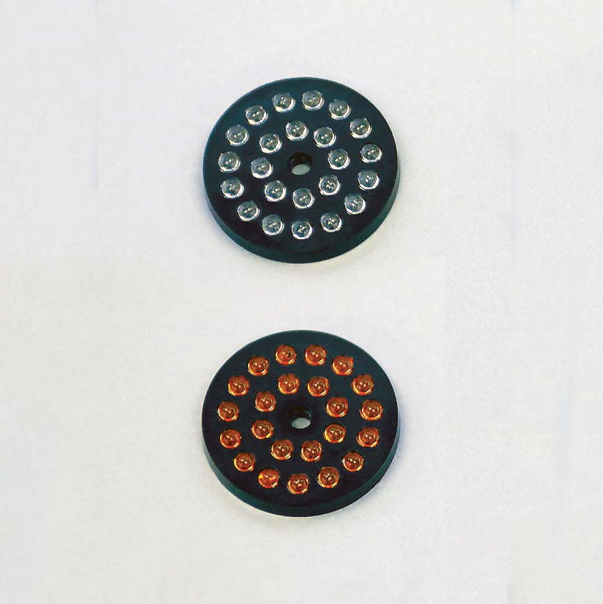 再帰反射する反射板をご用意しています。簡単に設置できますので是非ご活用ください。 ※視線誘導標の設置は、左側路側(白色)を原則とし、必要に応じて中央分離帯及び右側路側等(橙色)にも設置するものとなります。