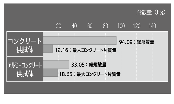 耐衝撃性能確認実験(*)よりアルミ合金製残存型枠は衝撃荷重によって破壊には至らず、型枠背面へのコンクリート片飛散に