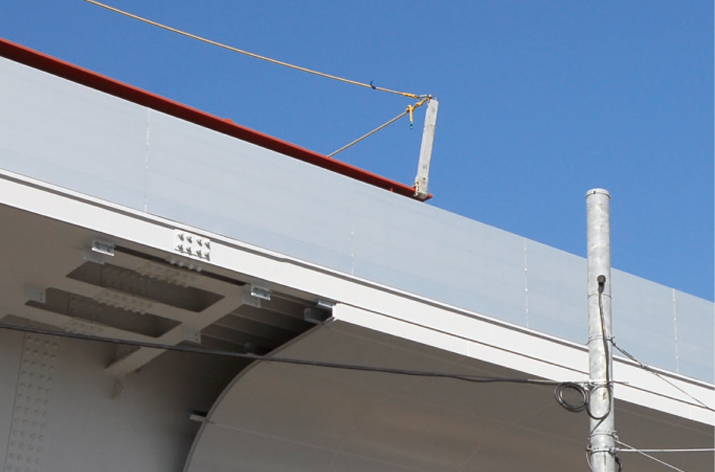 アルミニウム合金製残存型枠は、橋梁外側の壁高欄コンクリート型枠を外装材として使用することで、外部足場の早期撤去が可能となり工期短縮につながります。機能面では、交差点上の跨道橋や跨線橋においてコンクリート劣化による剥落を押さえ、コンクリート片落下の二次被害を防止することができる安全性の高い製品です。さらに、アルミ合金は耐食性に優れるため、橋梁維持管理が容易になります。