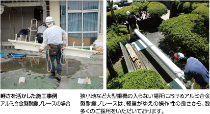 鋼製製品に比べ比重が約1/3で操作性が良く、施工性の向上が図れます。
