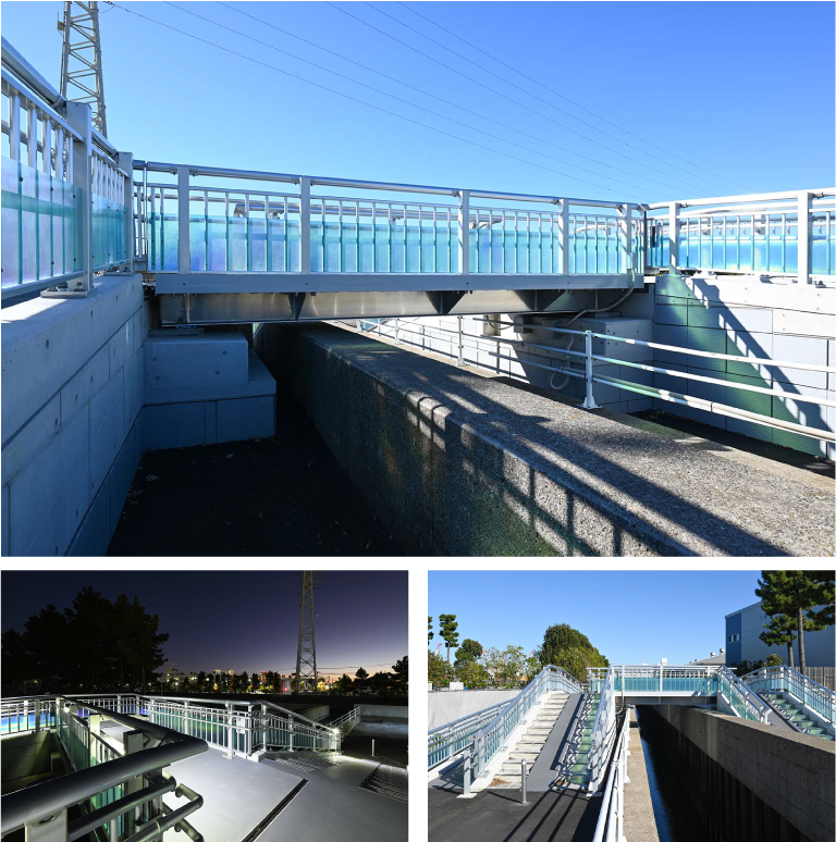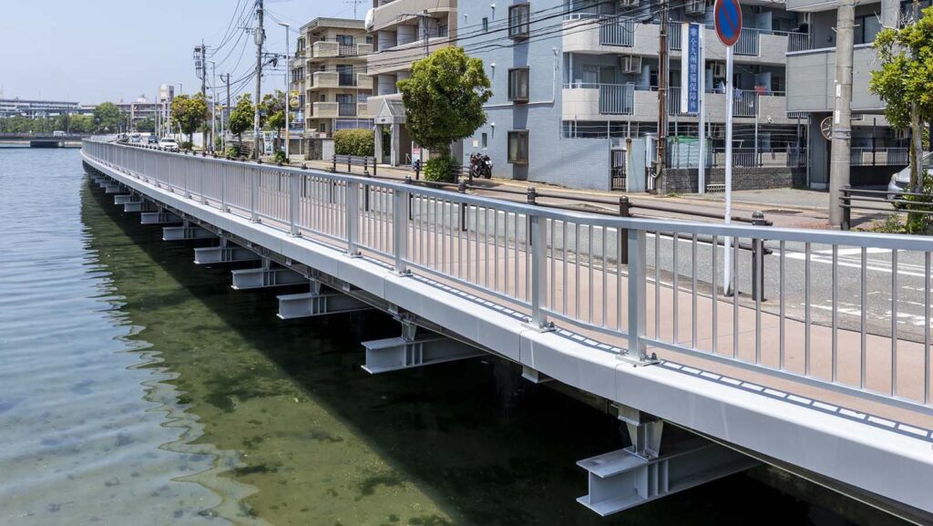 軽量で架設工期の短縮ができる塩害にも強いアルミ歩道橋です。