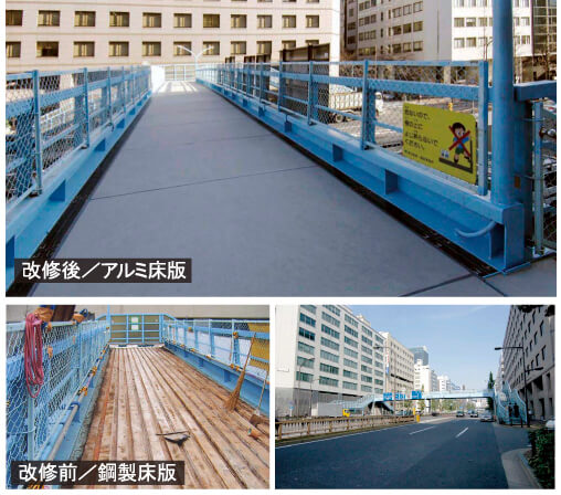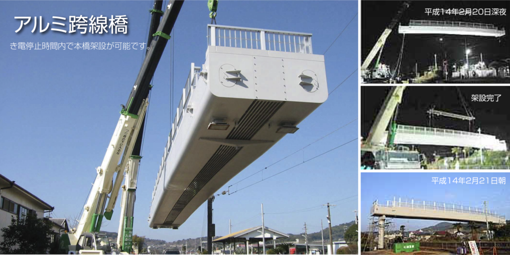 ました。アルミニウム合金製床版箱桁橋は、日本で初めての箱桁構造橋梁です。箱桁を軽量化することで、架設工期の短