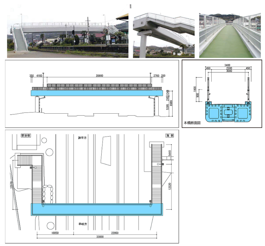 縮となり、また、架設場所が海岸線に近いため、軽量で塩害に強いアルミ製箱桁橋梁が採用されました。