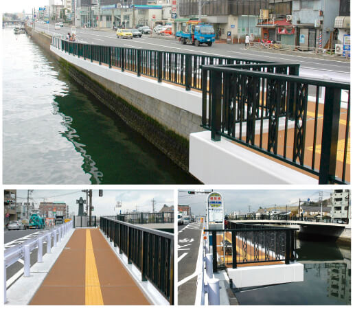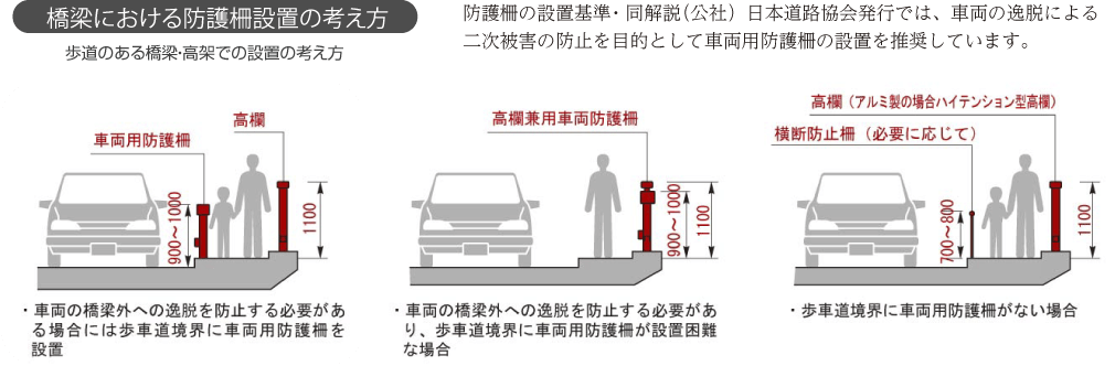 日軽エンジニアリングでは、安全性の観点より幅員の狭い橋梁における歩道拡幅においては、歩車道境界には車両用防護柵の設置をお奨めしています。