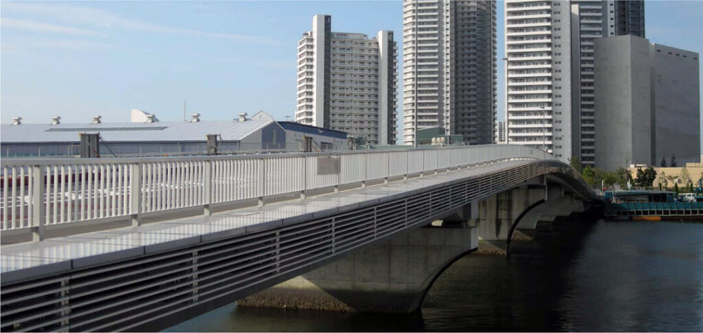 橋梁等高架構造物は、近年、周辺環境と調和する構造美にも配慮が求められています。アルミ製桁カバーは、アルミの特長である耐候性・軽量・デザイン性を活かしたアルミパネル・ルーバー・スパンドレルなどの多彩なアイテムにて個性豊かで快適な桁下空間の演出に最適です。