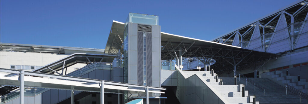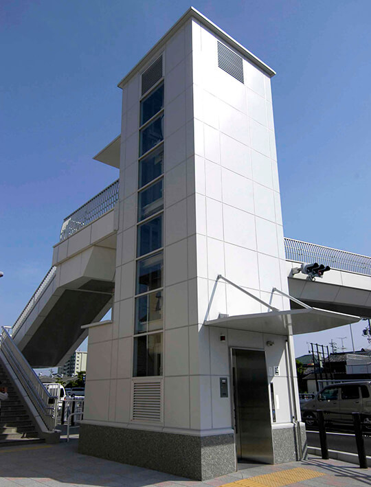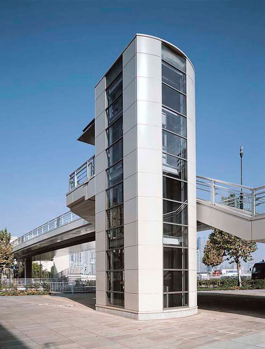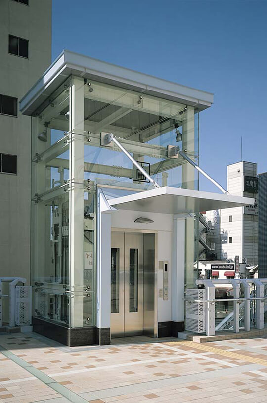 駅前ペデストリアンデッキ等に設置されるエレベーター棟も周辺環境との調和が求められています。