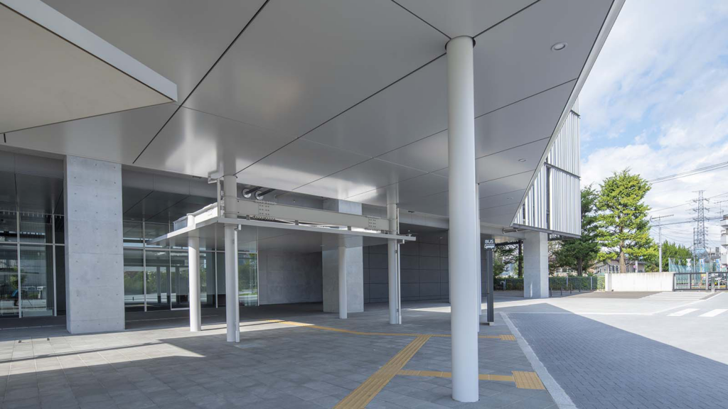 アルミハニカムパネルの庇・屋根やアルミ製外装板は、耐候性、機能美にも優れ、エレベーター棟を美装化できます。また、採光性や防犯性などにも考慮しながら、ガラスなど他素材との組合せもご提案します。このほかエレベーター塔以外にもカーテンウォール等の建築外装も承ります。
