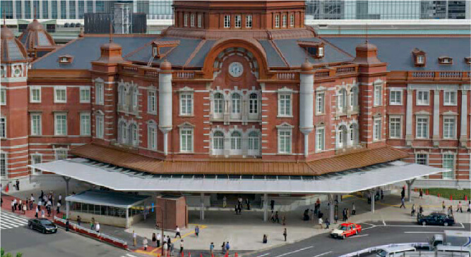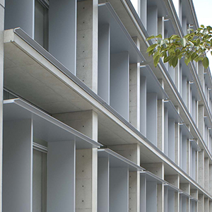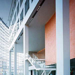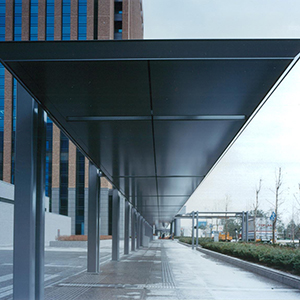 ハニカム構造は航空機の軽量化を目的に、第二次大戦中に英国で研究開発され、戦後米国で工業生産されました。当社は力学上もっとも理想的な構造であるハニカムパネルを建築土木分野に普及させるため、応力への許容性が高くかつ耐水・耐熱性に優れた高弾性接着剤を開発し、SLEAM工法(SNE Liquid Elastic Adhesive Method)を完成、超高層ビルカーテンウォールから屋根、庇まで多くの実績を重ねています。