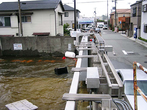 陸閘、水門は水害から人の生命と財産を守る施設として全国に多く設置されています。アルミ合金製陸閘・水門は軽量で操作性もよく、また耐食性の良さから多くの地域でご採用いただいています。弊社は、昭和39年、日本で初めてアルミ合金製水門を開発し、全国で数千門の実績があります。アルミ合金製ゲートのトップメーカーとしてこれからもより良い製品をご提供いたします。