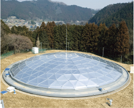 アルミ合金材をトラス構造で組み上げる工法です。外観は三角形多面体です。規模の大小を問わず様々な配水池・ファームポンドへの設置が可能です。