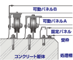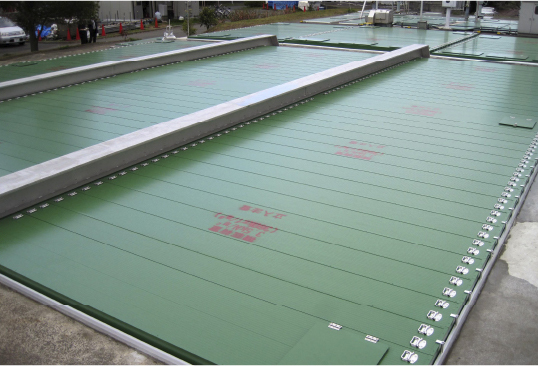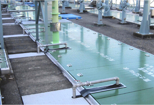 下水処理施設では防臭と槽内転落防止を目的とし、殆どの処理場に覆蓋が設置されています。弊社では、これまでに培った加工技術を活かし、軽量で耐久性に優れ悪環境下においても腐食しないアルミ合金製の覆蓋をご提案いたします。